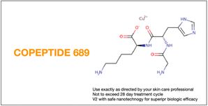 Copeptide 689 is the worlds first 2 part skin repair system. Mixed just prior to use this product contains 5 well known dermatologist approved ingredients Super Oxide Dimutase, Copper Peptide 689, Hexapeptide 389, Sodium Hyaluronate, Avena Sativabeta-Glucan that are activated and ready for use when mixed by the user.